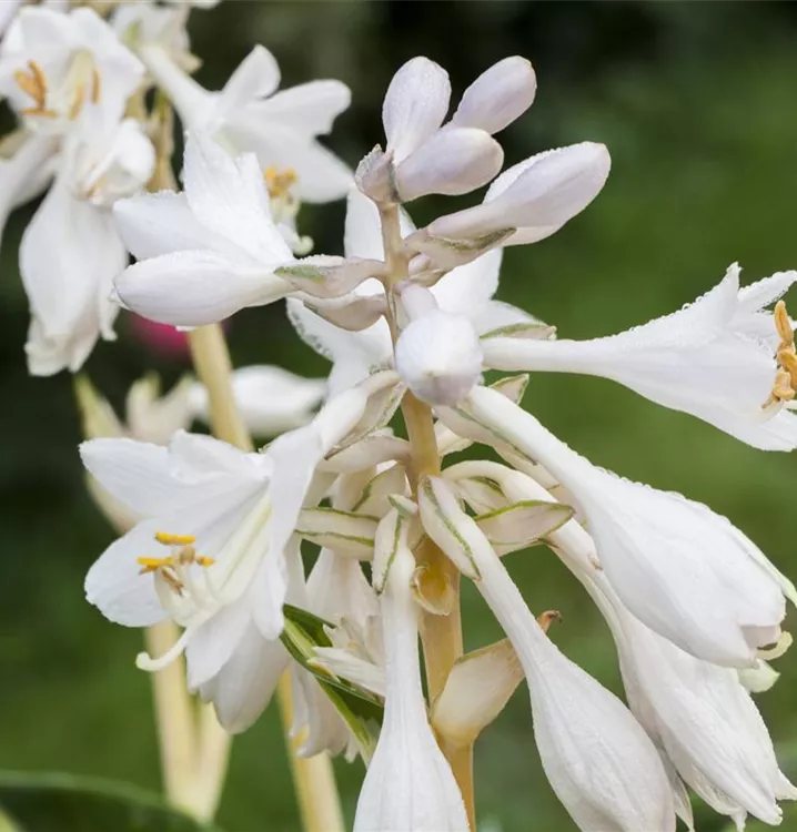 Hosta sieboldiana 'Great Expectations' bildet weiße Blüten ab Juni.