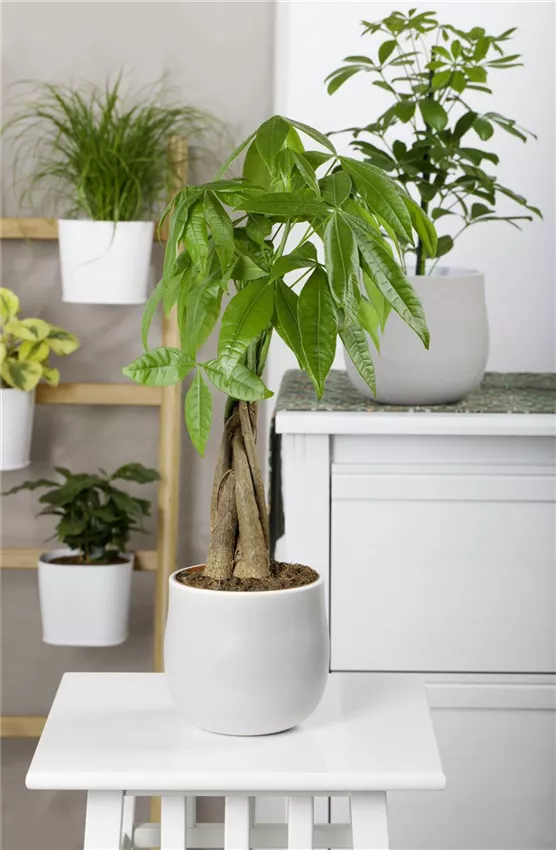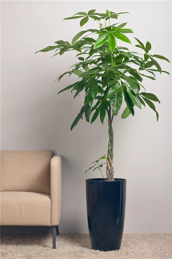 Dass die Glückskastanie zu den beliebtesten Zimmerpflanzen zählt ist kein Wunder. Die großen, knallgrünen Blätter und der hübsch geflochtene Stamm machen in jedem Ambiente etwas her.