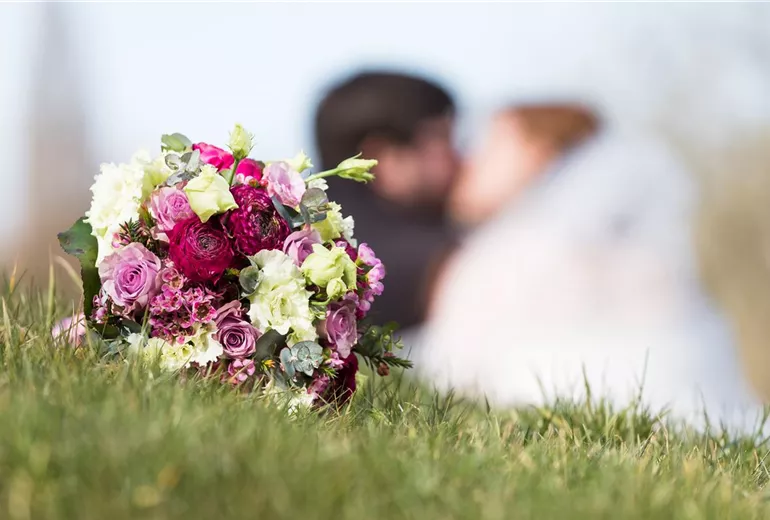 Grundsätzlich gilt beim Brautstrauß: er muss vor allem der Braut gefallen. Denn er ist das wichtigste Accessoire an dem schönsten Tag im Leben der Brautleute. Deshalb sollte der Brautstrauß ganz individuell nach den Wünschen der Brautleute zusammengestellt werden. Farbe, Stil und Form sollen nicht nur zum Brautkleid passen, sondern auch zum Anzug des Bräutigams. Außerdem bietet es sich an, darauf zu achten, dass die Blumen der Jahreszeit entsprechen. Welche Blumen sich am besten für den Brautstrauß eignen und welche dadurch auch länger frisch bleiben, sollte der Florist entscheiden. Dem kann man in dieser Angelegenheit blind vertrauen. Und auch wenn gefärbte Blumen sehr schon aussehen können, ist hier Vorsicht geboten: die Farbe der Blumen könnte abfärben und damit das Brautkleid gefährden. Und das soll natürlich nicht passieren. Aber auch hier wissen die Floristen genau Bescheid und geben nützliche Tipps, damit der Brautstrauß lange frisch bleibt.